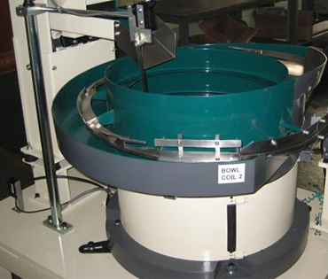 五金振动盘是一种自动组装或自动加工机械的辅助送料设备。它能把各种产品有序地排列出来,配合自动组装设备将产品各个部位组装起来成为完整的一个产品,或者配合自动加工机械完成对工件的加工。振动盘的组成:料斗、底盘、控制器、直线送料器。振动盘料斗下面有个脉冲电磁铁,可以使料斗作垂直方向振动,由倾斜的弹簧片带动料斗绕其垂直轴做扭摆振动。料斗内零件,由于受到这种振动而沿螺旋轨道上升。在上升的过程中经过一系列轨道的筛选或者姿态变化,零件能够按照组装或者加工的要求呈统一状态自动进入组装或者加工位置。 其工作目的是通过振动将无序工件自动有序定向排列整齐、正确地输送到下道工序。